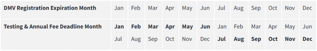 Bold months indicate the month the compliance fee will be due